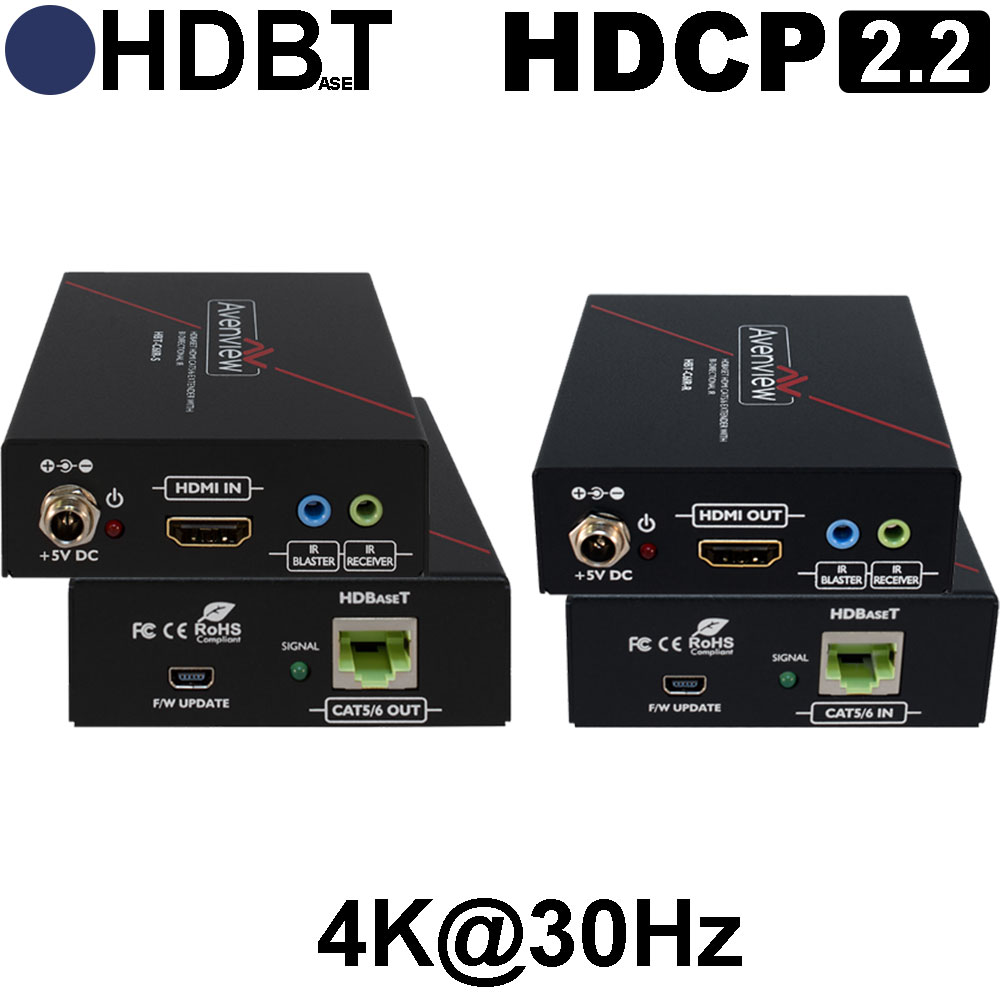 Das 4K HDMI HDBaseT Verlängerungssystem Avenview HBT−C6IR−SET besteht aus einem HDBT-HDMI-Sender (HBT−C6IR−S) und einem HDBT-HDMI-Empfänger (HBT−C6IR−R). Mit dem HDMI-HDBT-Extender Set HBT−C6IR−SET von Avenview können Sie, dank HDBaseT Lite-Technologie, (ultra)hochauflösende AV- und Infrarot-Signale über ein einzelnes CAT5/CAT6 übertragen.