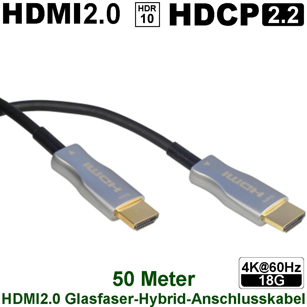 50m 4K60 HDMI2.0 Hybid-Glasfaserkabel | HDR10, 18G, LPCM, DTS-X und Dolby Atmos werden unterstützt