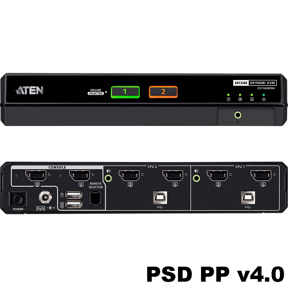 ATEN CS1142DPH4: 2-Port USB 5K Dual DisplayPort/HDMI Universal Secure KVM Switch (PSD PP v4.0-konform)