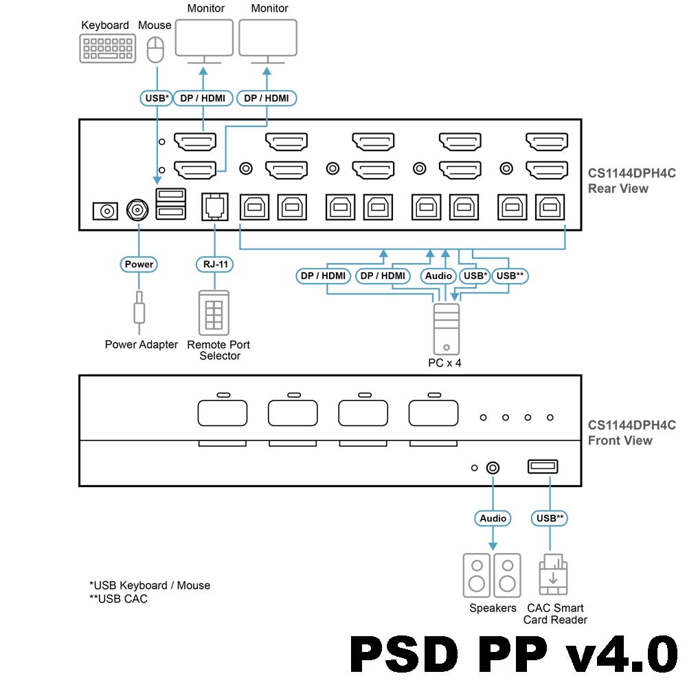 Der ATEN PSD PP v4.0 Universal Secure KVM Switch CS1144DPH4C entspricht dem PSD PP v4.0-Standard (Protection Profile for Peripheral Sharing Device, Version 4.0), der von der National Information Assurance Partnership (NIAP) zertifiziert wurde.