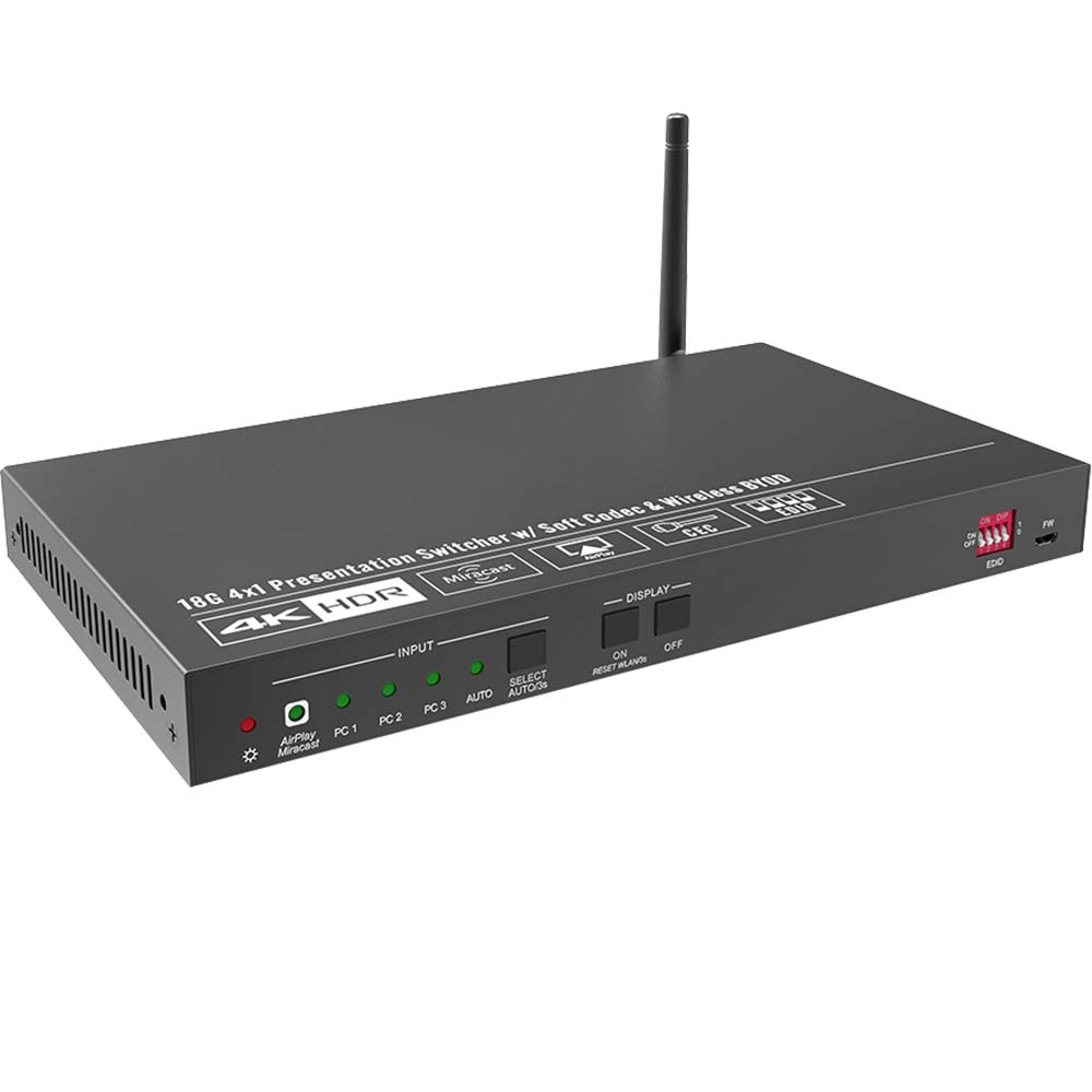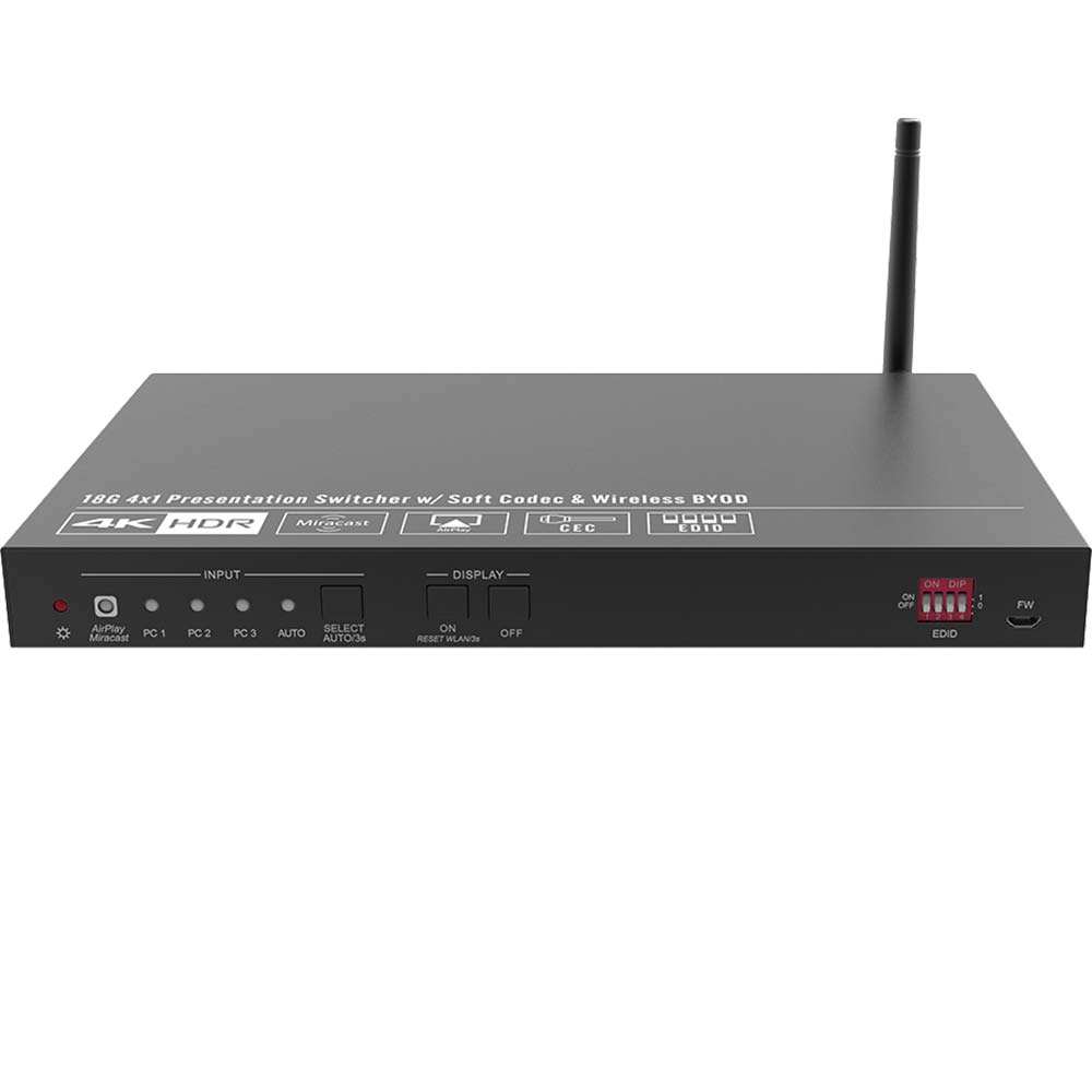 • 4-Port 18G KVM-Präsentationsumschalter mit Softcodec & drahtlosem BYOD