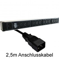 19'' Steckdosenleiste | Out: 12x IEC C13, In: 1x C20 (Stecker) am 2,5m Kabel | horizontaler u. vertikaler Einbau in IT-Schränke
