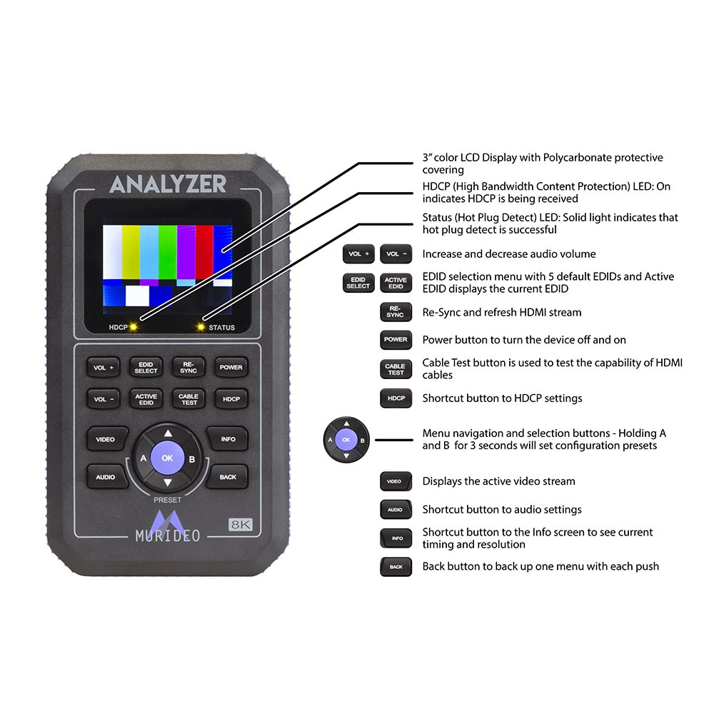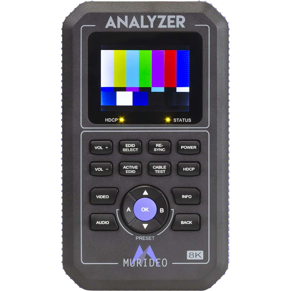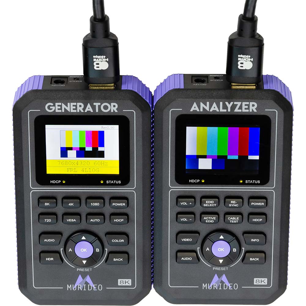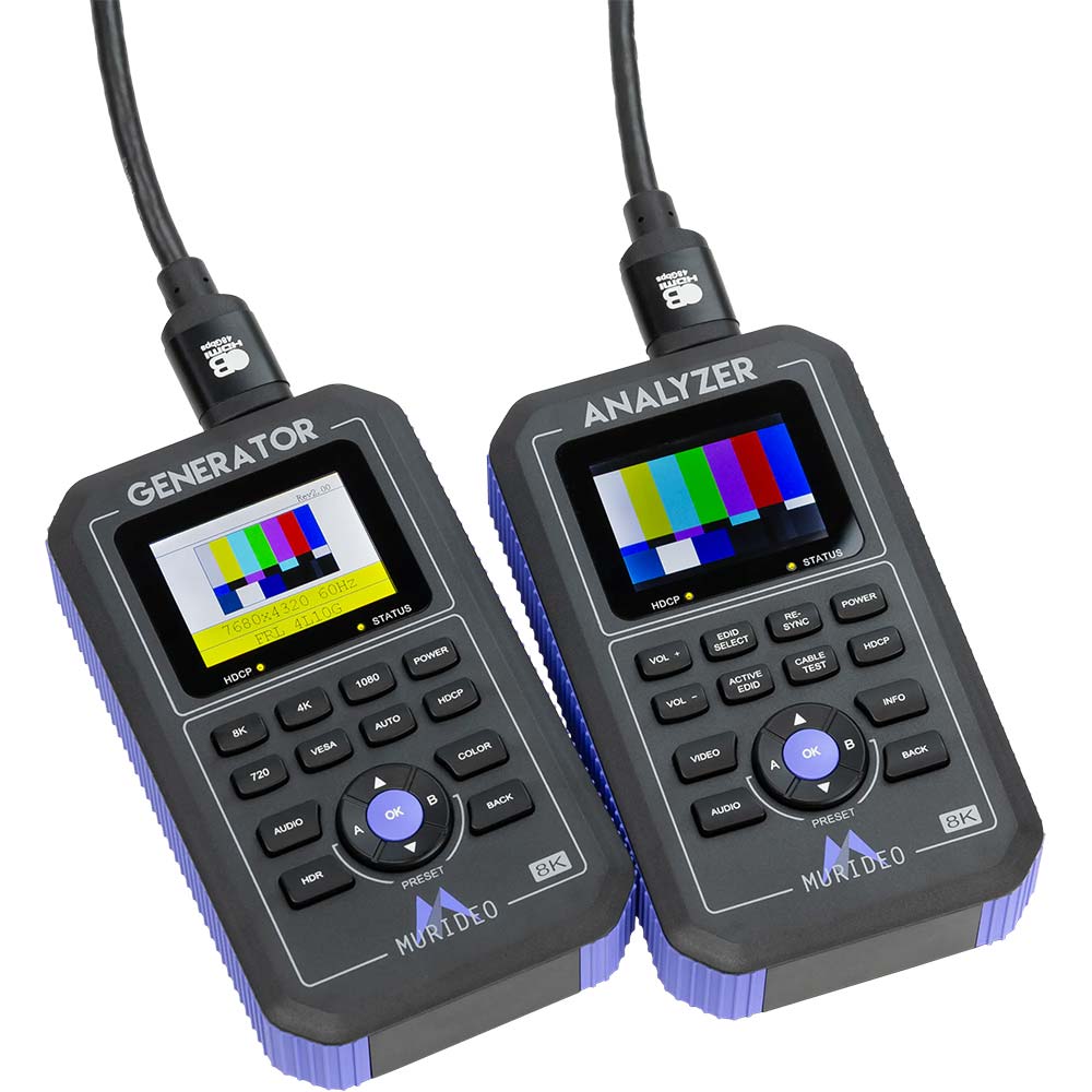 • Das 8K Fox & Hound Test- und Fehlerbehebungs-Kit MU-FXHD-KIT-8K von Murideo wurde entwickelt, damit Integratoren ein umfassendes Generator- und Analysegerät zur Hand haben